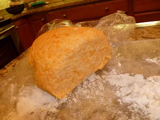 | Place sections of dough on lightly floured board (I use acrylic , cleans easier) |